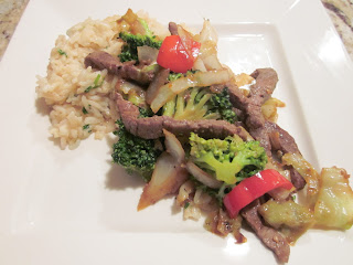 In a frying pan heat olive oil and add protein, cook until golden brown and cooked through, about 10 minutes (depending on meat, if tofu may be a little less time, if chicken maybe a little more time). Remove from pan and set aside. Next add onions and garlic and saute for 2 minutes, add the rest of vegetables and saute for another 5 minutes. Add protein back into the pan and add 3 tbsp of sesame oil and soy sauce, stir and remove from heat.